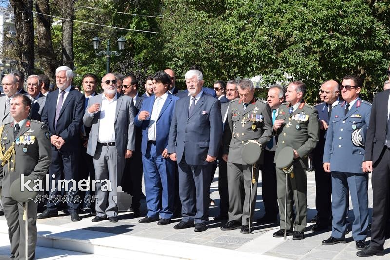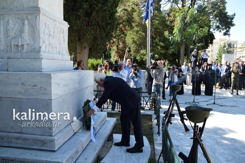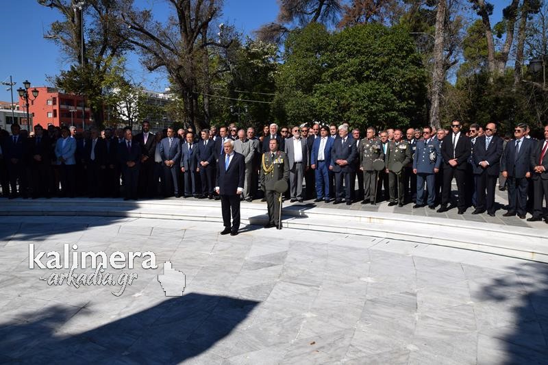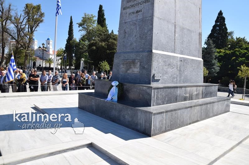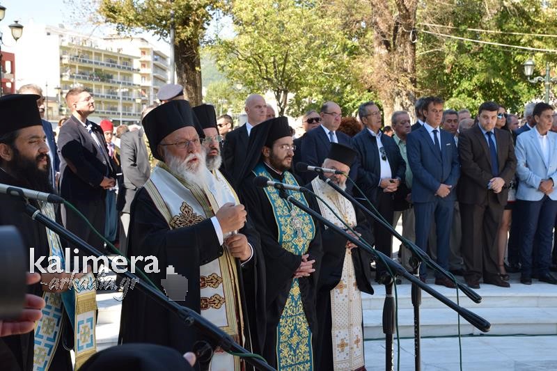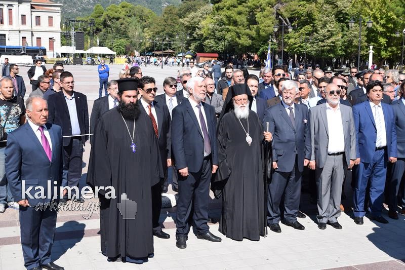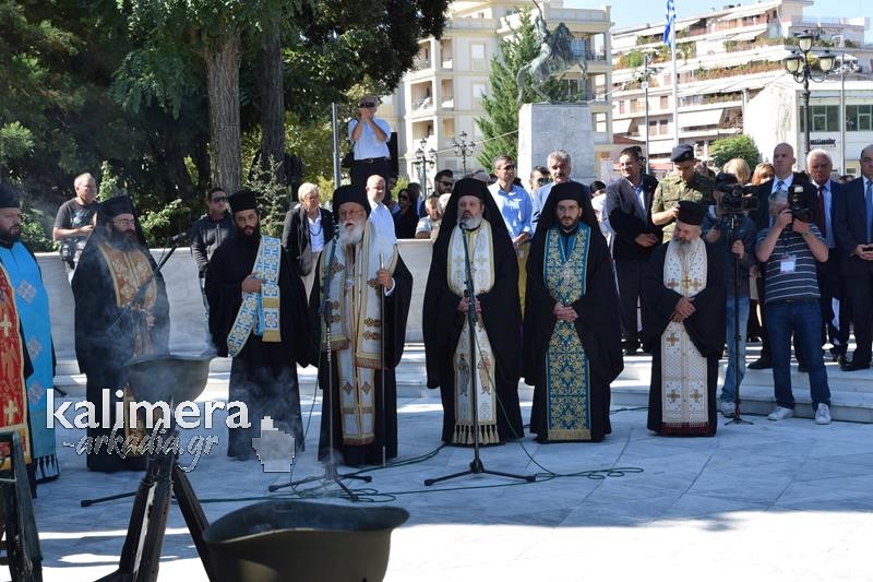 Μετά την Αρχιερατική Δοξολογία, στον Μητροπολιτικό Ναό του Αγίου Βασιλείου, για την επέτειο της Απελευθέρωσης της Τρίπολης, ακολούθησε η καθιερωμένη επιμνημόσυνη δέηση και κατάθεση στεφάνων στο μνημείο Αρχιερέων και Προκρίτων, στην Πλατεία Άρεως.