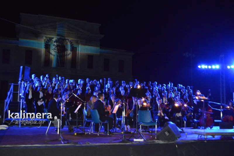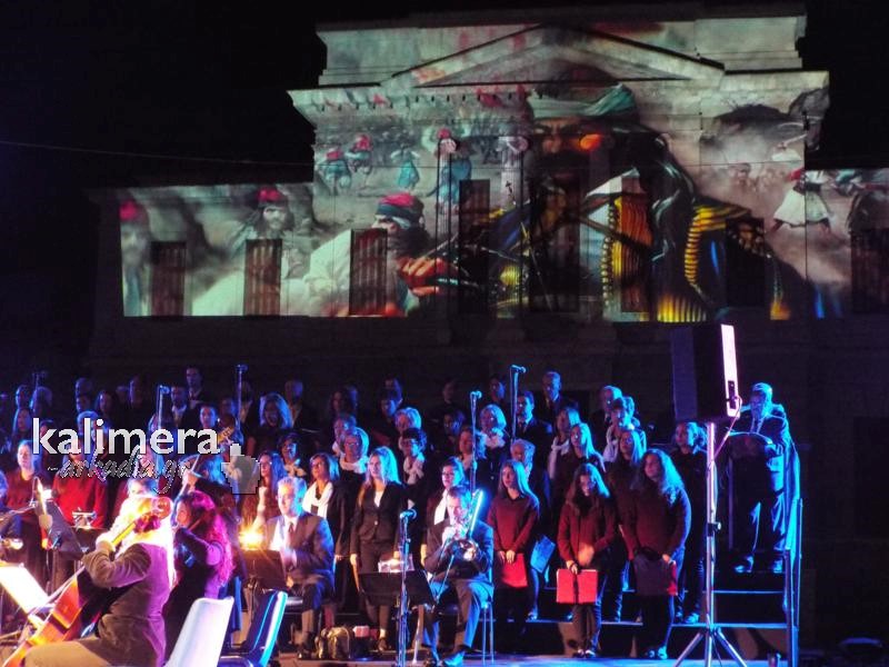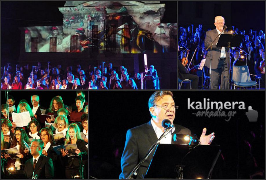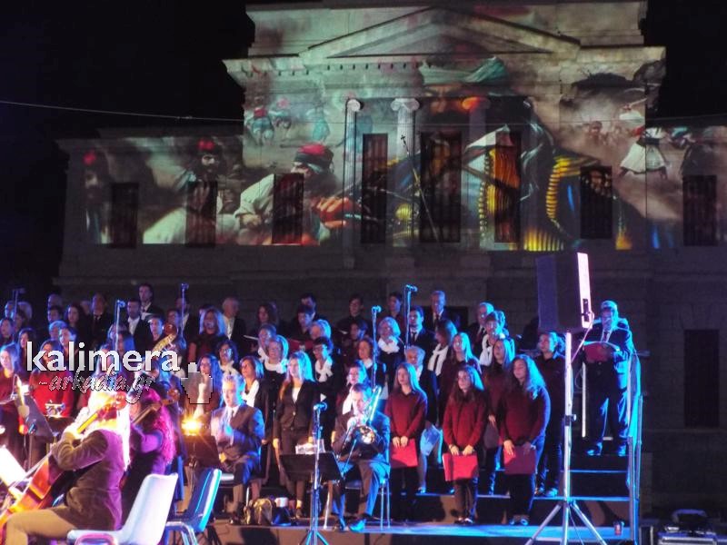 Με μία μεγάλη μουσική εκδήλωση, με εντυπωσιακούς φωτισμούς, πάνω στο κτίριο του Δικαστικού Μεγάρου, υπό τη διεύθυνση του Θεόδωρου Λεμπέση, με αφήγηση από τον ηθοποιό Κώστα Κόκλα και με τη συμμετοχή των Χορωδιών της πόλης (Χορωδία Ορφέας, Χορωδία Τρίπολης και Χορωδία του Μουσικού Σχολείου Τρίπολης), έκλεισαν οι επετειακές εκδηλώσεις για την Απελευθέρωση της Τρίπολης.