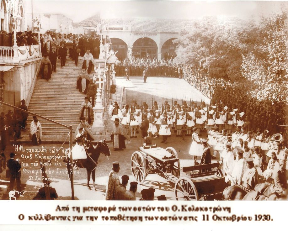 Φωτογραφικό υλικό από την εταφορά των οστών του Θεόδωρου Κολοκοτρώνη στην Τρίπολη (10-12 Οκτωβρίου 1930), παρουσία του πρωθυπουργού Ελευθέριου Βενιζέλου, ανάρτησε το Πολεμικό Μουσείο της Τριπολης.