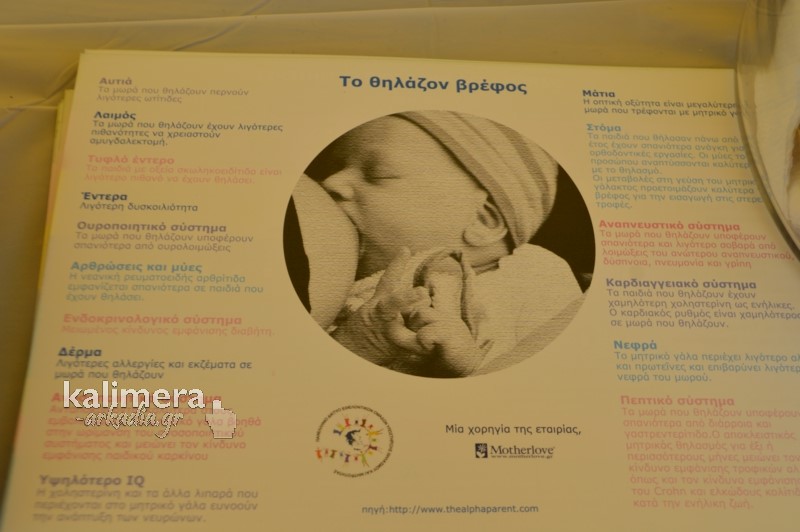 Η πιο τρυφερή εικόνα, υπήρξε, μπροστά στο Μαλλιαροπούλειο θέατρο, στο κέντρο της Τρίπολης, το πρωί της Κυριακής, όταν - για άλλη μια χρονιά- μαμάδες θήλασαν δημόσια τα παιδιά τους, στα πλαίσια του εορτασμού της Παγκόσμιας Εβδομάδας του Μητρικού Θηλασμού. Το Πανελλήνιο Δίκτυο Εθελοντικών Ομάδων Υποστήριξης Μητρικού Θηλασμού και Μητρότητας διοργάνωσε, τον Πανελλαδικό Ταυτόχρονο Δημόσιο Θηλασμό σε πολλές πόλεις της Ελλάδας.