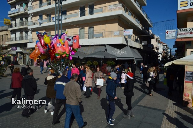 Παιδιά που είχαν βγει από νωρίς να πουν τα κάλαντα, η φιλαρμονική του δήμου να παίζει χριστουγεννιάτικες μελωδίες, παππούδες και γιαγιάδες μαζί με τα εγγόνια τους, συνέβαλαν σ' ένα άκρως εορταστικό και όμορφο σκηνικό, μια ανάσα πριν τα Χριστούγεννα.
