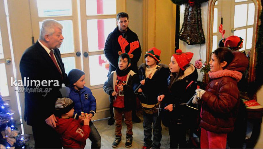 Πάρα πολλά παιδιά δέχτηκε το πρωί του Σαββάτου, στο γραφείο του, στο παλαιό Δημαρχείο, για τα κάλαντα, ο Δήμαρχος Τρίπολης, Δημήτρης Παυλής.