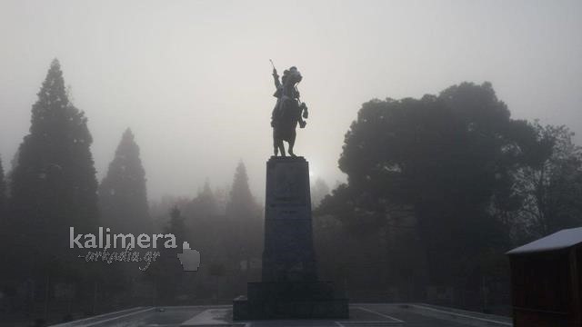Υπέροχες φωτογραφίες με τον ανδριάντα του Θεόδωρου Κολοκοτρώνη, πασπαλισμένο από το χιόνι, μέσα σε ένα τοπίο ομιχλώδες, αναρτά σήμερα το "Καλημέρα Αρκαδία".