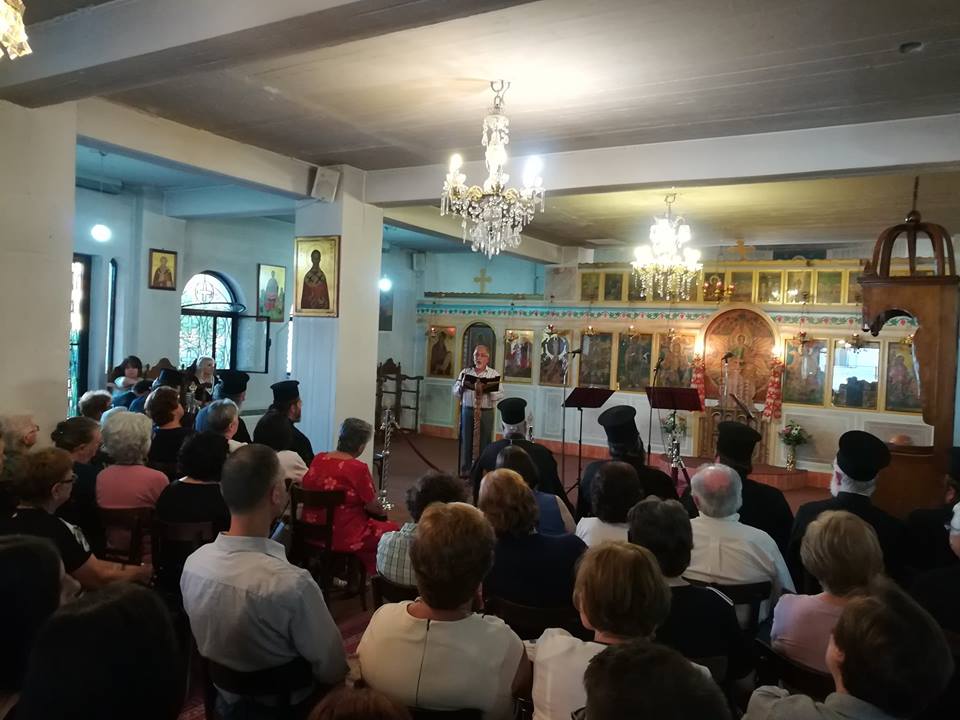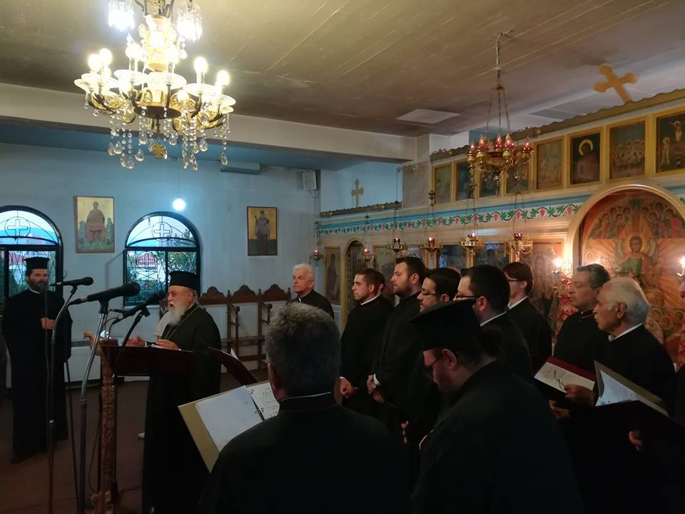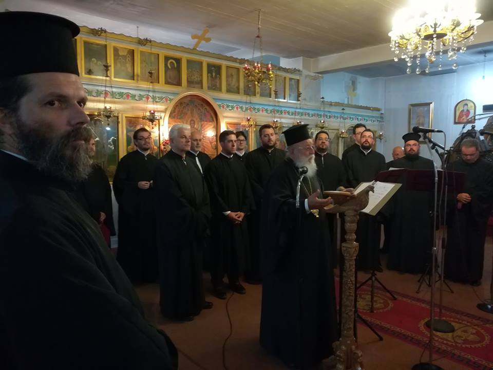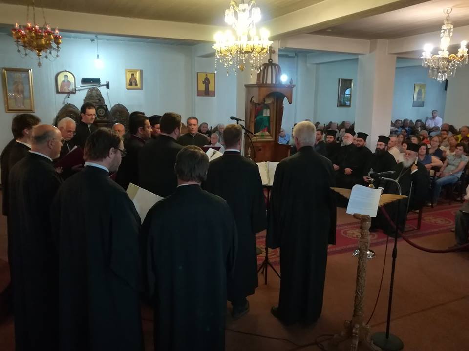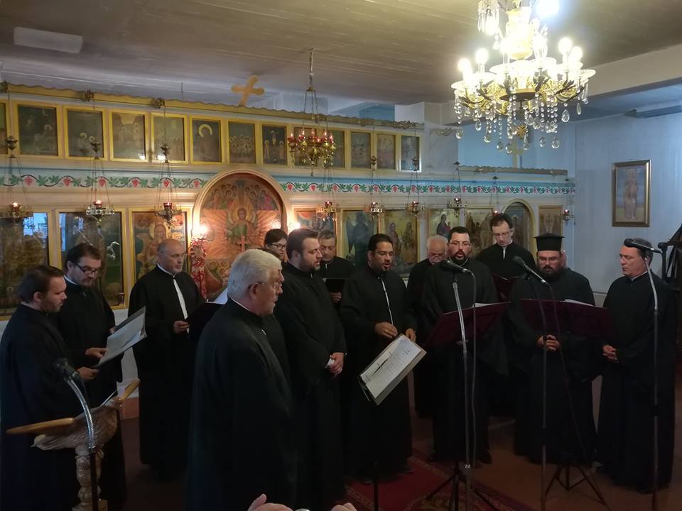 Ἐν συνεχείᾳ ὁ Βυζαντινός Χορός τοῦ Ναοῦ ὑπό τὴν διεύθυνσιν τοῦ κ. Βασιλείου Κούρου ἀπέδωσε ὕμνους πρός τιμήν τοῦ Ἁγίου Νεομάρτυρος Παύλου καὶ τοῦ Ἁγίου Τρύφωνος . Τὴν ἐκδήλωσιν ἔκλεισε μὲ χαιρετισμό του ὁ Σεβασμιώτατος Μητροπολίτης Μαντινείας καί Κυνουρίας κ.κ. Ἀλέξανδρος.