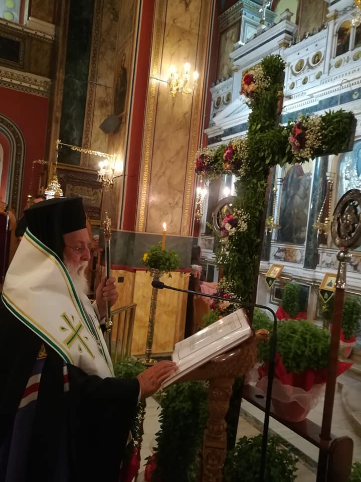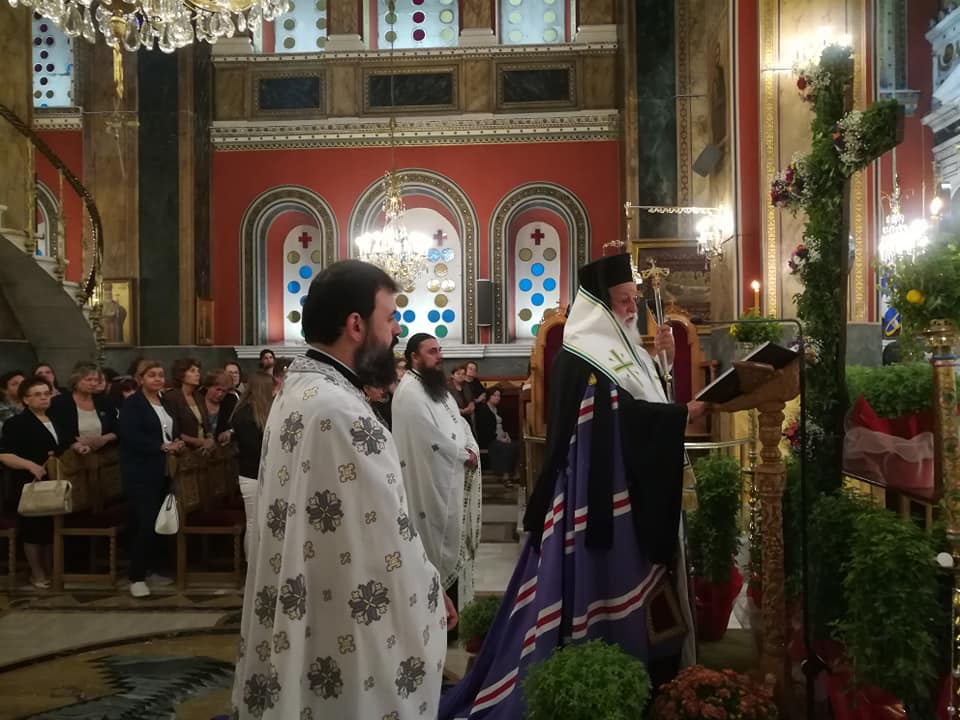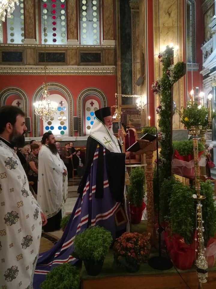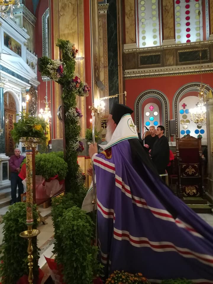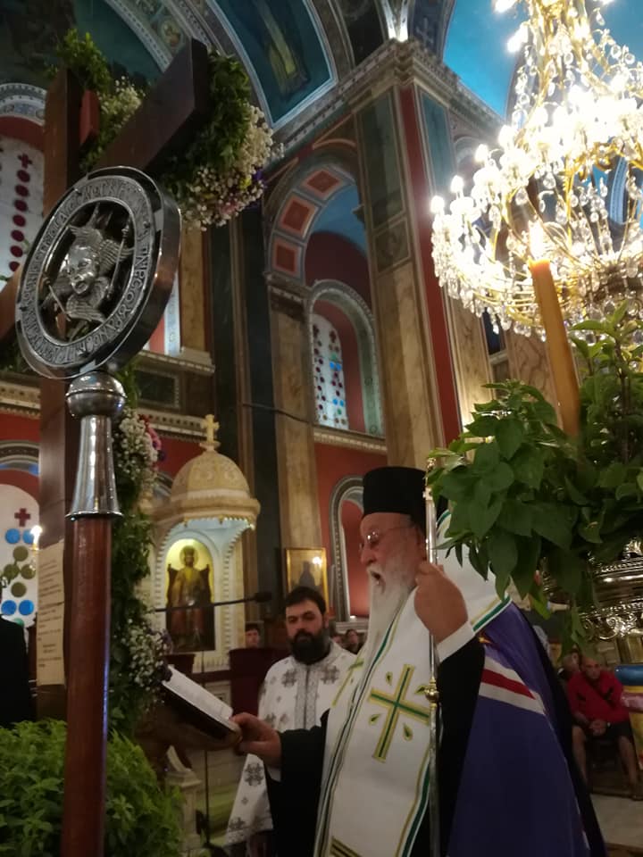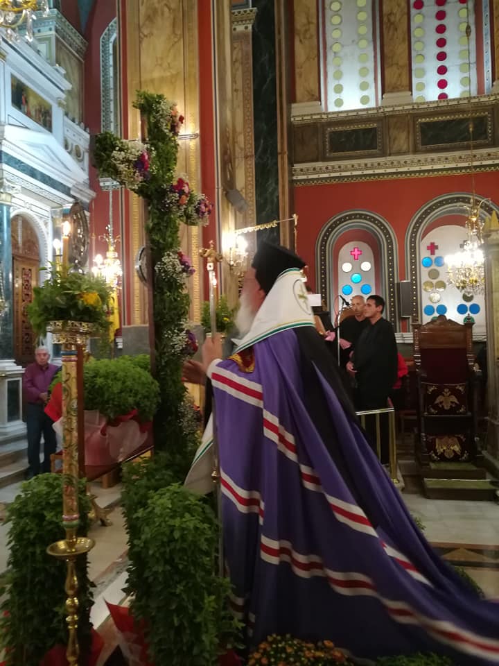 Πλῆθος φιλοχρίστου Λαοῦ συμετεῖχε καί ἐφέτος στήν λαμπροφόρο αὐτή Ἀκολουθία πρός τιμήν τοῦ Τιμίου Σταυροῦ, τοῦ Ζωηφόρου Ξύλου, ἐπάνω στό ὁποῖο ὑπεγράφη μέ τό Τίμιο Αἷμα τοῦ Κυρίου ἡ σωτηρία τοῦ κόσμου, λαμβάνοντας τίς Ἀρχιερατικές εὐχές τοῦ Σεβασμιωτάτου Ποιμενάρχου μας, καθώς καί τίς εὐλογίες καί τήν προστασία τοῦ ἐν σαρκί σταυρωθέντος Κυρίου ἡμῶν Ἰησοῦ Χριστοῦ.