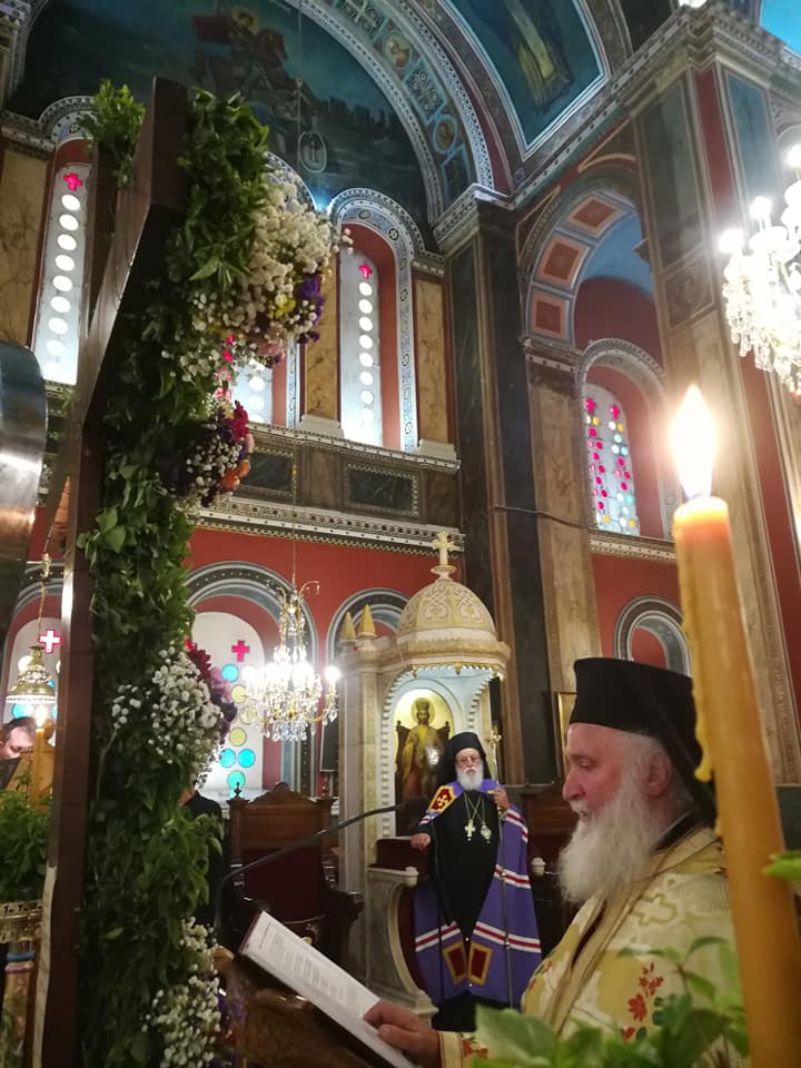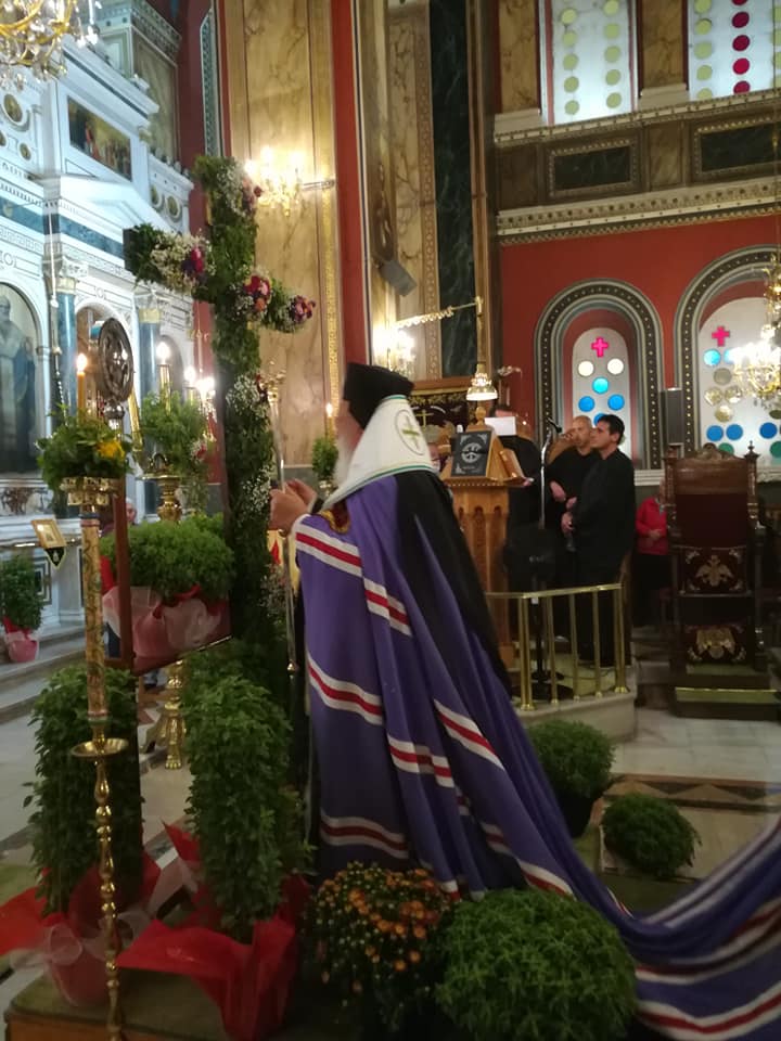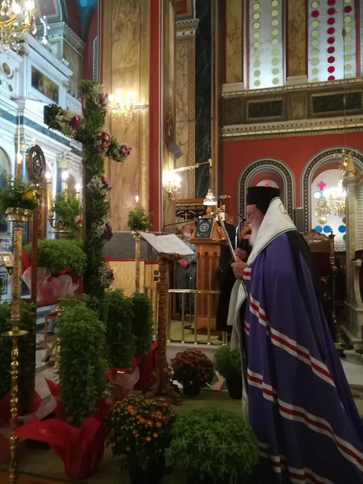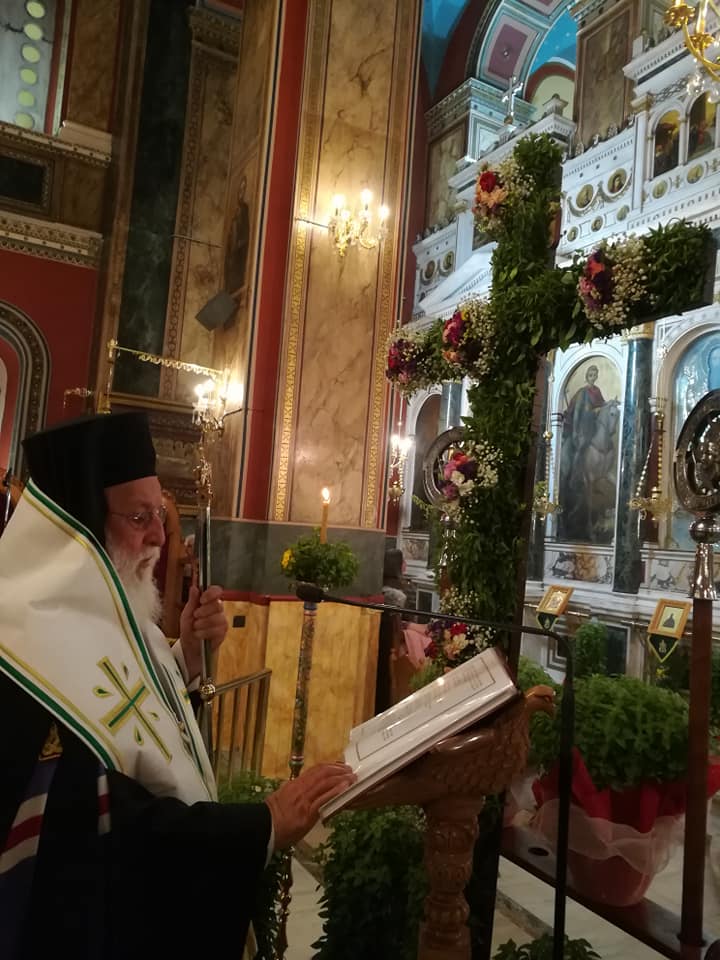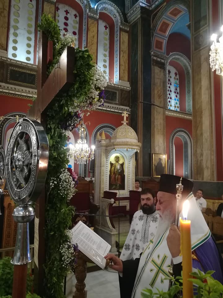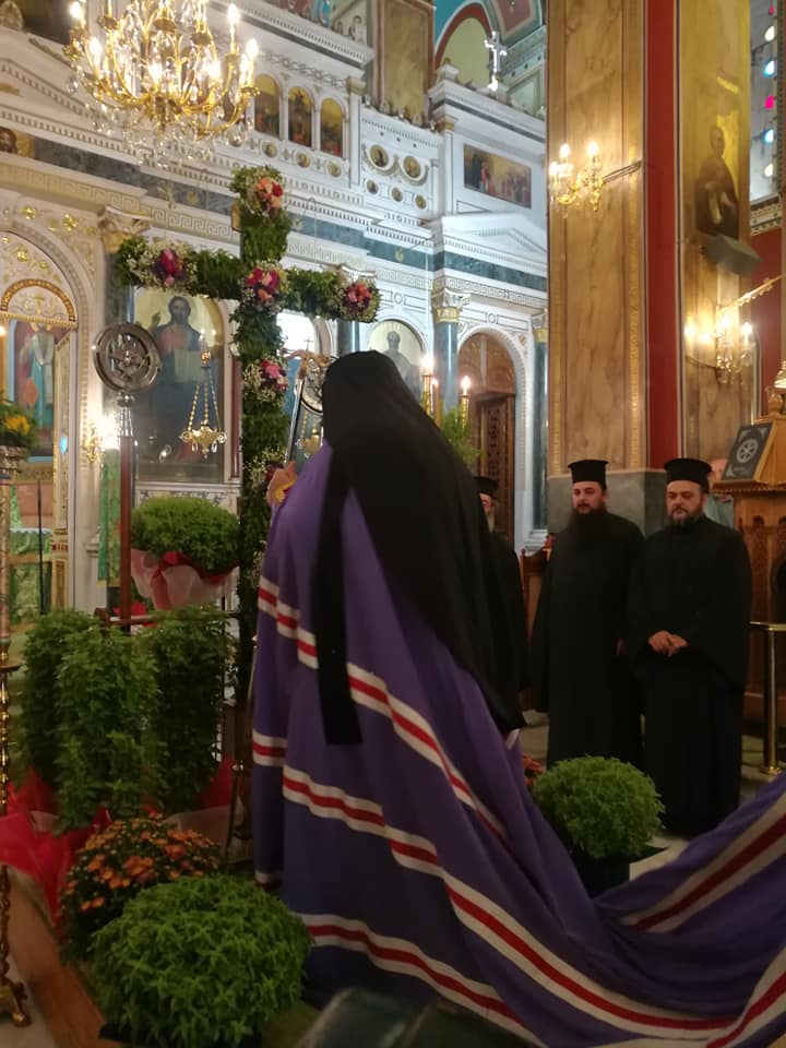 Πλῆθος φιλοχρίστου Λαοῦ συμετεῖχε καί ἐφέτος στήν λαμπροφόρο αὐτή Ἀκολουθία πρός τιμήν τοῦ Τιμίου Σταυροῦ, τοῦ Ζωηφόρου Ξύλου, ἐπάνω στό ὁποῖο ὑπεγράφη μέ τό Τίμιο Αἷμα τοῦ Κυρίου ἡ σωτηρία τοῦ κόσμου, λαμβάνοντας τίς Ἀρχιερατικές εὐχές τοῦ Σεβασμιωτάτου Ποιμενάρχου μας, καθώς καί τίς εὐλογίες καί τήν προστασία τοῦ ἐν σαρκί σταυρωθέντος Κυρίου ἡμῶν Ἰησοῦ Χριστοῦ.