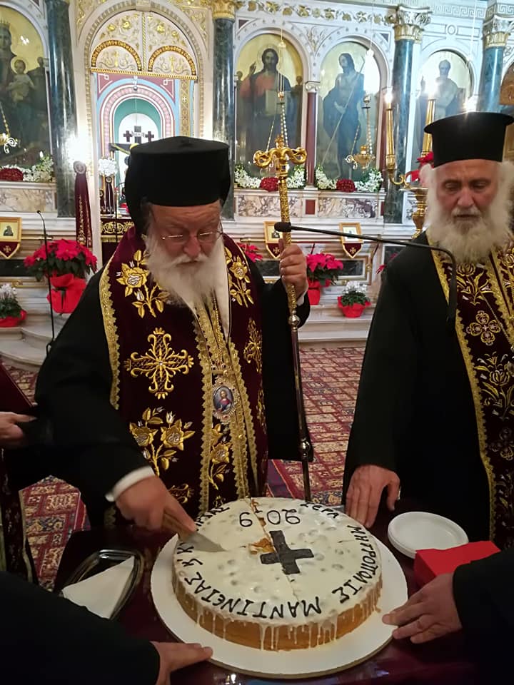 Τήν 31η Δεκεμβρίου 2018, τά μεσάνυχτα, 12 ἡ ὥρα ἀκριβῶς, στόν Μητροπολιτικό Ναό τοῦ Ἁγίου Βασιλείου Τριπόλεως ὁ Σεβασμιώτατος Μητροπολίτης μας κ. ΑΛΕΞΑΝΔΡΟΣ ὑποδέχθηκε τόν καινούργιο Χρόνο 2019 καί εὐθύς ἀμέσως κατά το νέο ἔτος, 1η Ἰανουαρίου 2019 εὐλόγησε τήν Βασιλόπιττα τῆς Ἱερᾶς Μητροπόλεως Μαντινείας και Κυνουρίας εὐχόμενος ὁ νέος Χρόνος νά εἶναι εὐλογημένος καί εἰρηνικό.