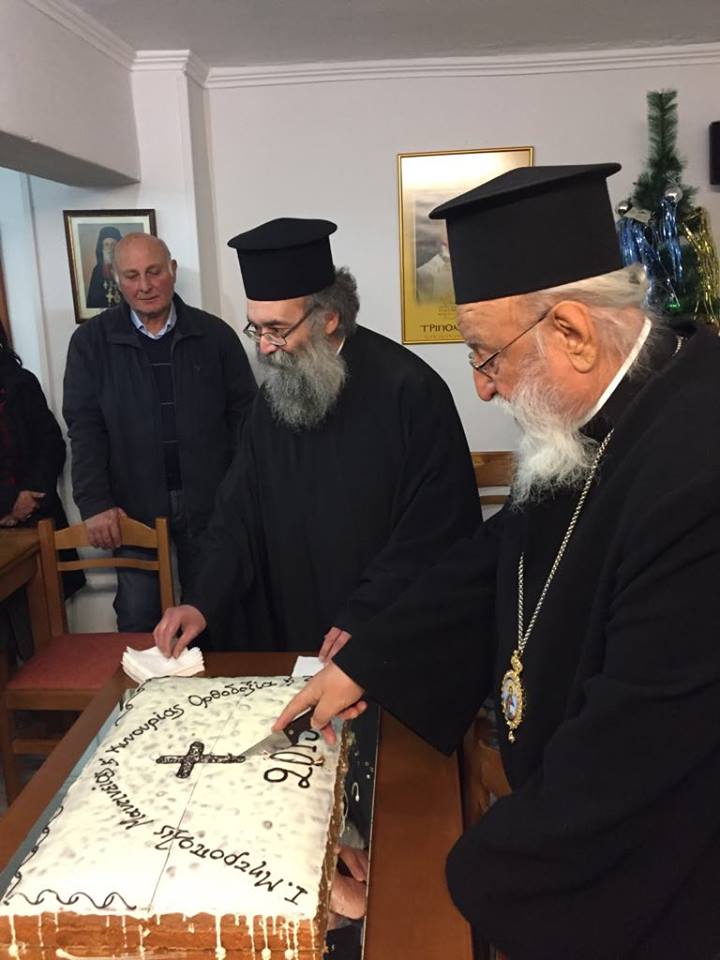 Τή Δευτέρα 14/1/2019, ὥρα 8.00 μ.μ., ὁ Σεβ. Μητροπολίτης Μαντινείας καί Κυνουρίας κ.κ. ΑΛΕΞΑΝΔΡΟΣ εὐλόγησε τή Βασιλόπιττα τοῦ Θεολογικοῦ Προγράμματος τῆς Ἱερᾶς Μητροπόλεως, μέ τίτλο «Ὀρθοδοξία καί Ζωή», τό ὁποῖο ἐπαναλειτουργεῖ μετά τίς διακοπές τῶν ἑορτῶν τῶν Χριστουγέννων καί τοῦ Νέου Ἔτους. Μέ τήν εὐκαιρία, ὁ Σεβ. Μητροπολίτης μας μίλησε σχετικά, ἀναφερόμενος σέ θέματα τῆς πίστης μας καί τῆς ζωῆς τῆς Ἐκκλησίας καί συζήτησε μέ τά μέλη τοῦ Προγράμματος. Παρέστησαν ὁ ὑπεύθυνος τοῦ Προγράμματος π. Σωτήριος Ἀθανασούλιας, ἐφημέριος τοῦ Μητροπολιτικοῦ Ἱεροῦ Ναοῦ Ἁγίου Βασιλείου Τριπόλεως, καί Ἱερεῖς τῆς Μητροπόλεως.