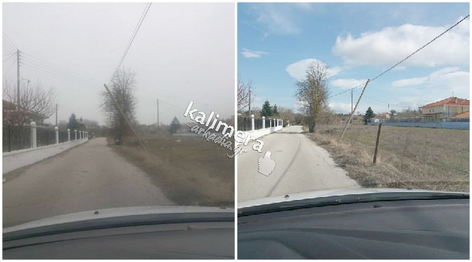 Μετά την ανάρτηση του "Καλημέρα Αρκαδία", που έδειχνε την κολόνα να έχει γείρει προς την πλευρά του δρόμου και των σπιτιών που βρίσκονται εκεί, προφανώς κάποιοι πήγαν και την έσπρωξαν, προκειμένου να γέρνει πλέον από ... την άλλη πλευρά!