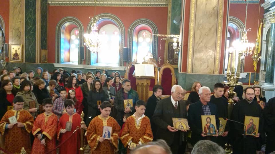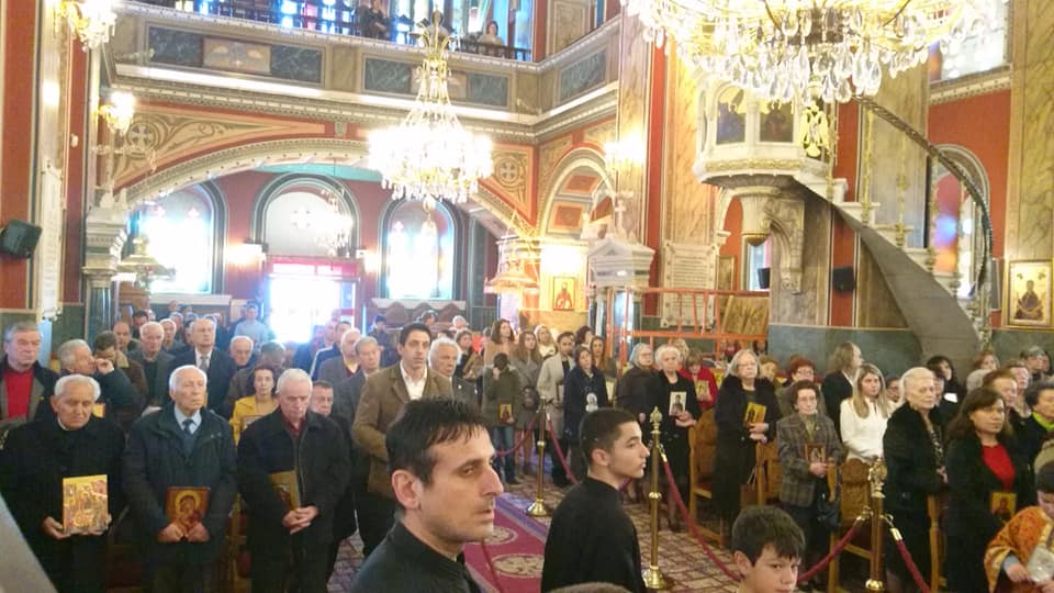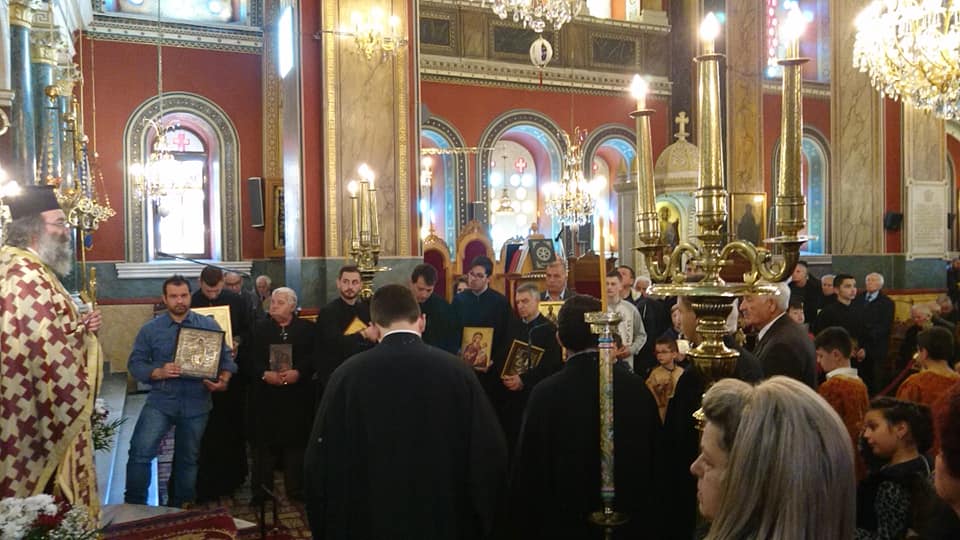 Μετά τήν Ἀρχιερατική Θεία Λειτουργία, ἔγινε ἡ Λιτάνευση τῶν ἱερῶν Εἰκόνων περίξ τοῦ Ναοῦ, μέ τή συμμετοχή τοῦ ἱεροῦ Κλήρου, τῶν τοπικῶν ἀρχῶν καί τοῦ εὐσεβοῦς Λαοῦ τῆς πόλεως, ὅπου καί ἀναγνώσθηκαν τά σχετικά ἀποσπάσματα ἀπό τό Συνοδικόν τῆςἁγίας καί Οἰκουμενικῆς Ζ΄ Συνόδου.