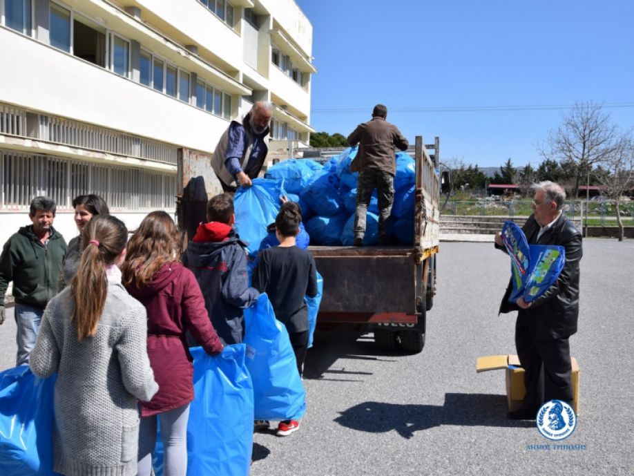 Ο Δήμος Τρίπολης, στηρίζοντας την προσπάθεια της συμμετοχής του 2ου Γυμνασίου Τρίπολης παρέλαβε τα ανακυκλώσιμα υλικά που είχαν συγκεντρώσει οι μαθητές, με όχημα του Δήμου μεταφέροντας τα, στο χώρο του πάρκου ανακύκλωσης.