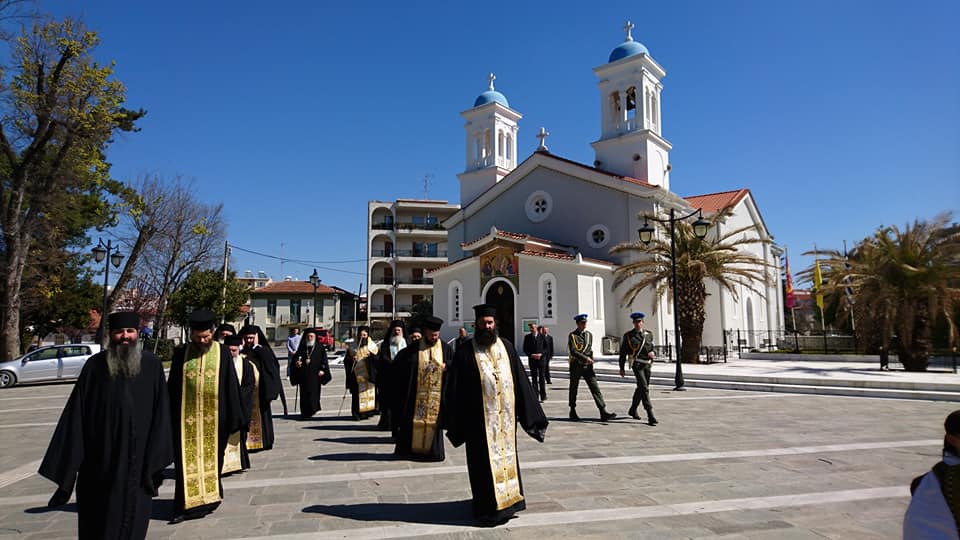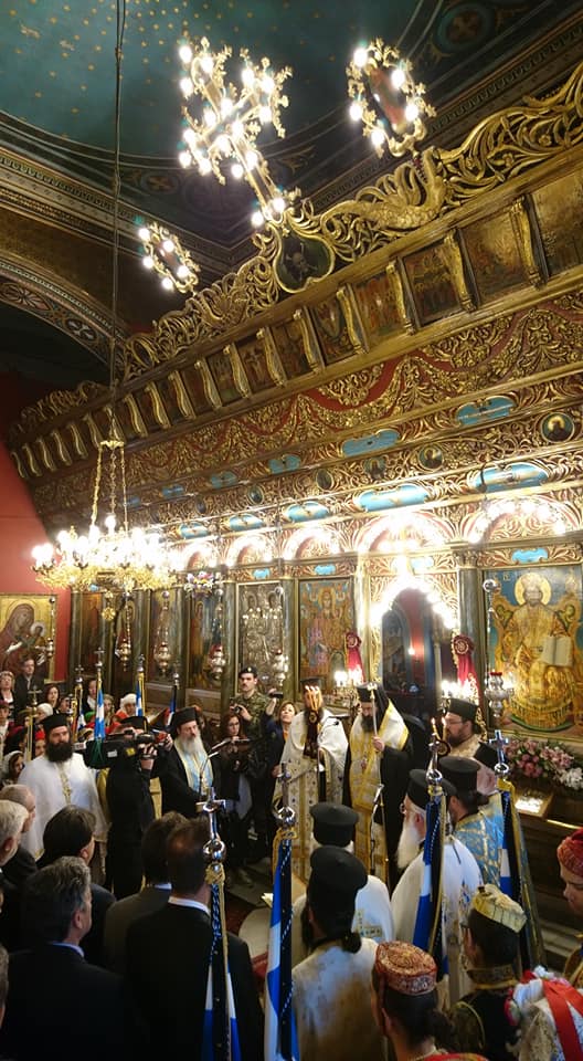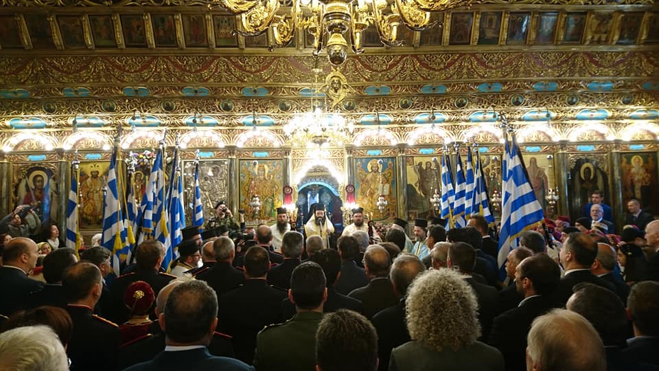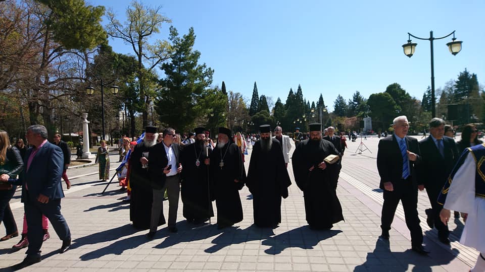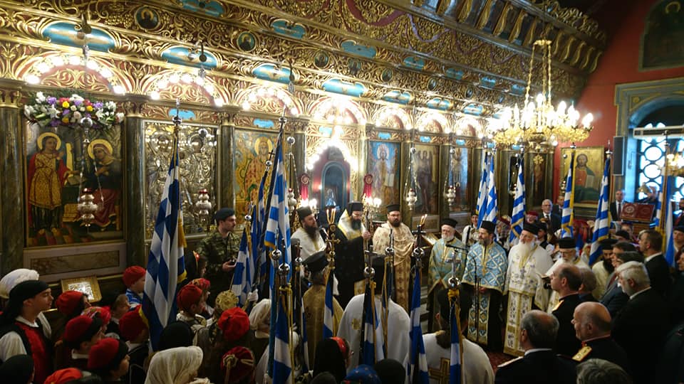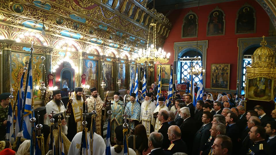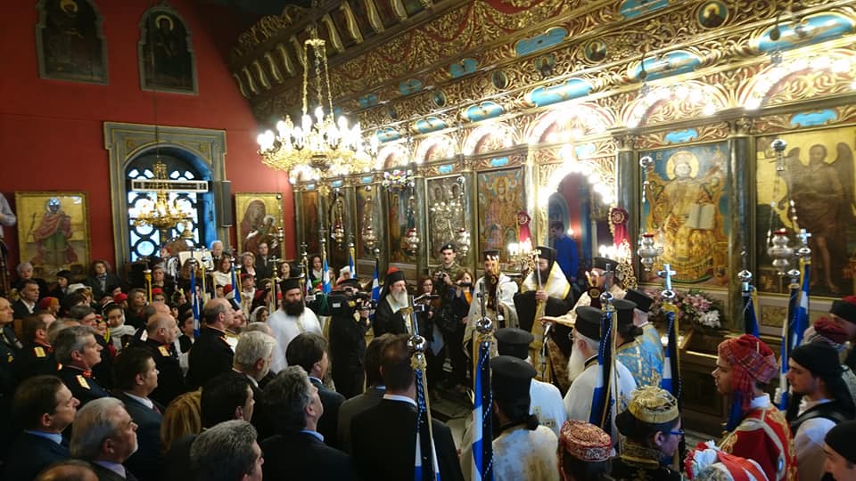 Κατόπιν ὁ νέος Ἐπίσκοπος χοροστάτησε στή Δοξολογία ἐπί τῇ Ἐθνικῇ ἑορτῇ καί Παλιγγενεσίᾳ, καθώς καί στό Τρισάγιο στό Μνημεῖο τῶν Ἀρχιερέων καί Προκρίτων καί παρακολούθησε μετά τοῦ Σεβασμιωτάτου καί τῶν ἐπισήμων τή μαθητική καί στρατιωτική παρέλαση.
