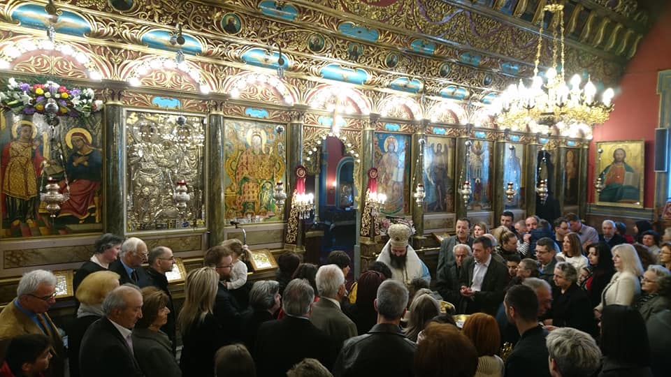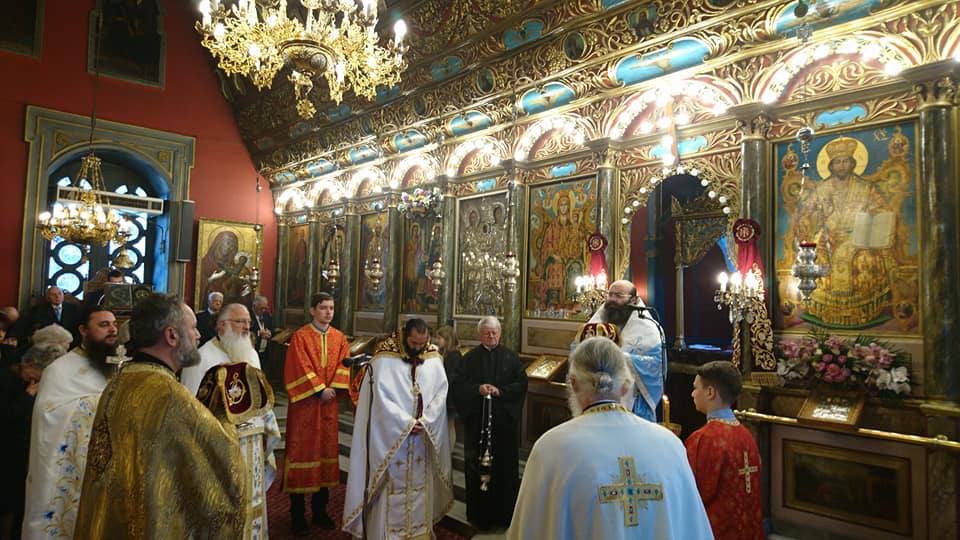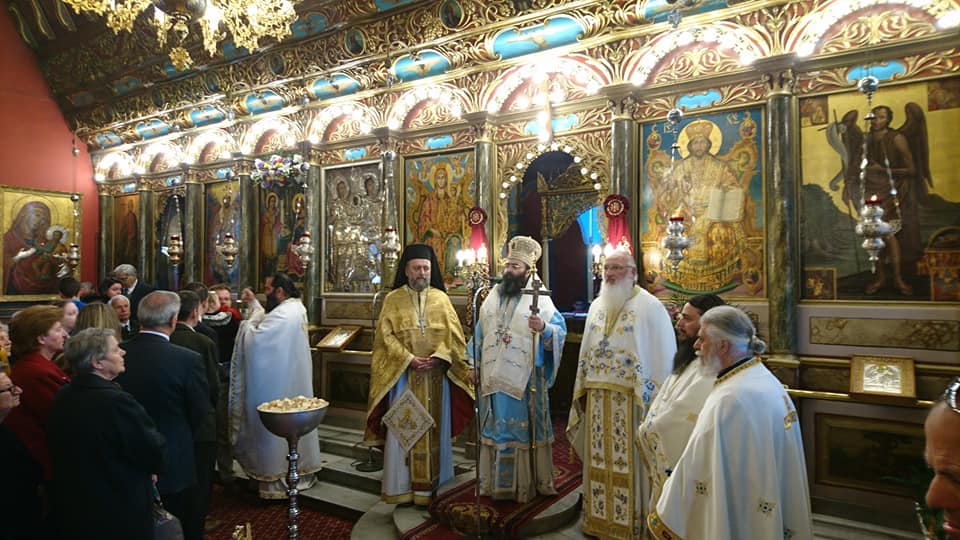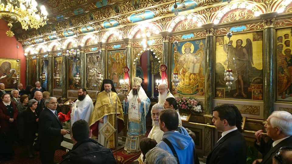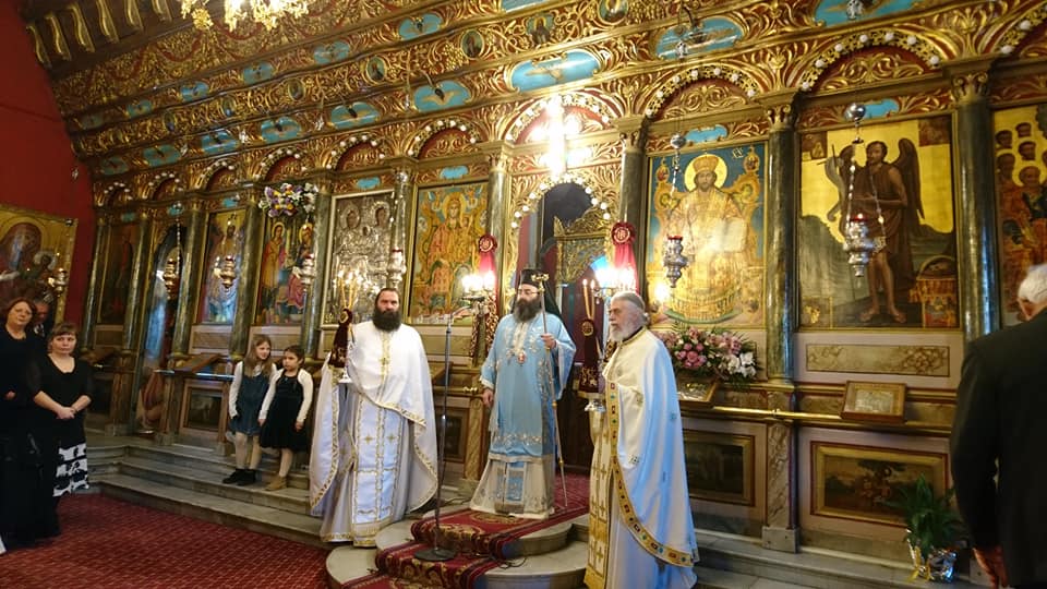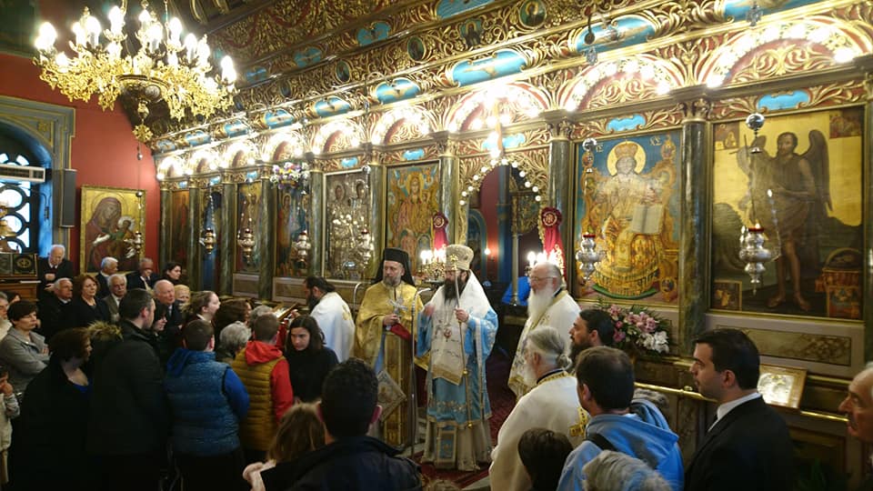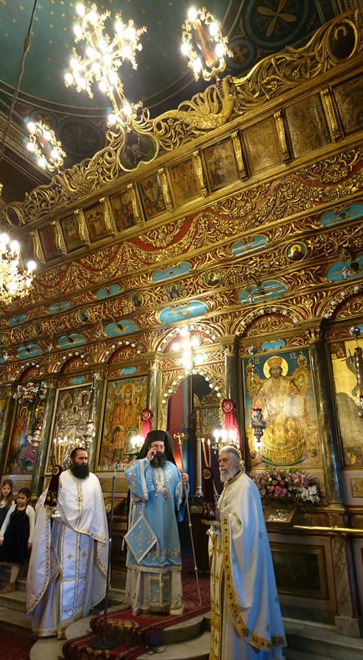 Στόν Ἱερό Ναό Παμμεγίστων Ταξιαρχῶν Τριπόλεως τέλεσε τήν πρώτη του Θεία Λειτουργία σήμερα, 25η Μαρτίου 2019, κατά τήν ἑορτή τοῦ Εὐαγγελισμοῦ τῆς Θεοτόκου, ὁ Θεοφιλέστατος Ἐπίσκοπος Τεγέας κ. ΘΕΟΚΛΗΤΟΣ, παρόντος καί τοῦ Σεβασμιωτάτου Μητροπολίτου Μαντινείας καί Κυνουρίας κ. ΑΛΕΞΑΝΔΡΟΥ.