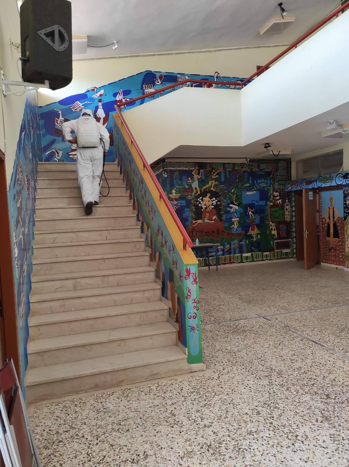 Οι σχολικές Επιτροπές Πρωτοβάθμιας και Δευτεροβάθμιας Εκπαίδευσης σε συνεργασία με τους Διευθυντές των σχολείων έχουν μεριμνήσει ώστε να προμηθευθούν με το απαραίτητο υγειονομικό υλικό και τα αντισηπτικά. Παράλληλα έχει πραγματοποιηθεί απολύμανση και απεντόμωση στους εξωτερικούς χώρους από συνεργείο του Δήμου και στους εσωτερικούς χώρους από εξιδεικευμένο συνεργείο.