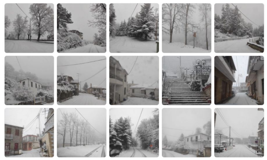 Ισχυρή χιονόπτωση και χιονόστρωση στο Καστρί Αρκαδίας.