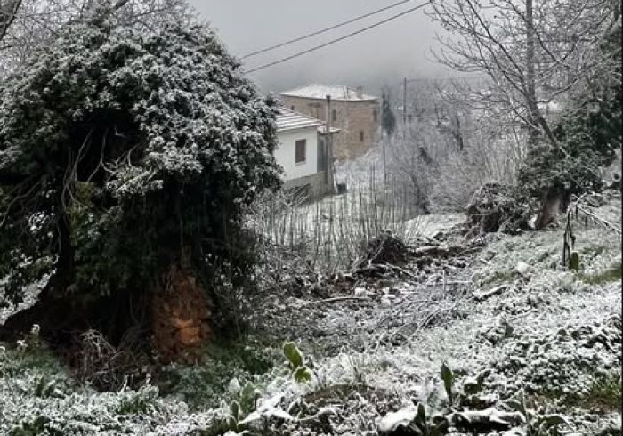 Ακόμα ένα χωριό της ορεινής Κυνουρίας ντύθηκε σήμερα στα λευκά.