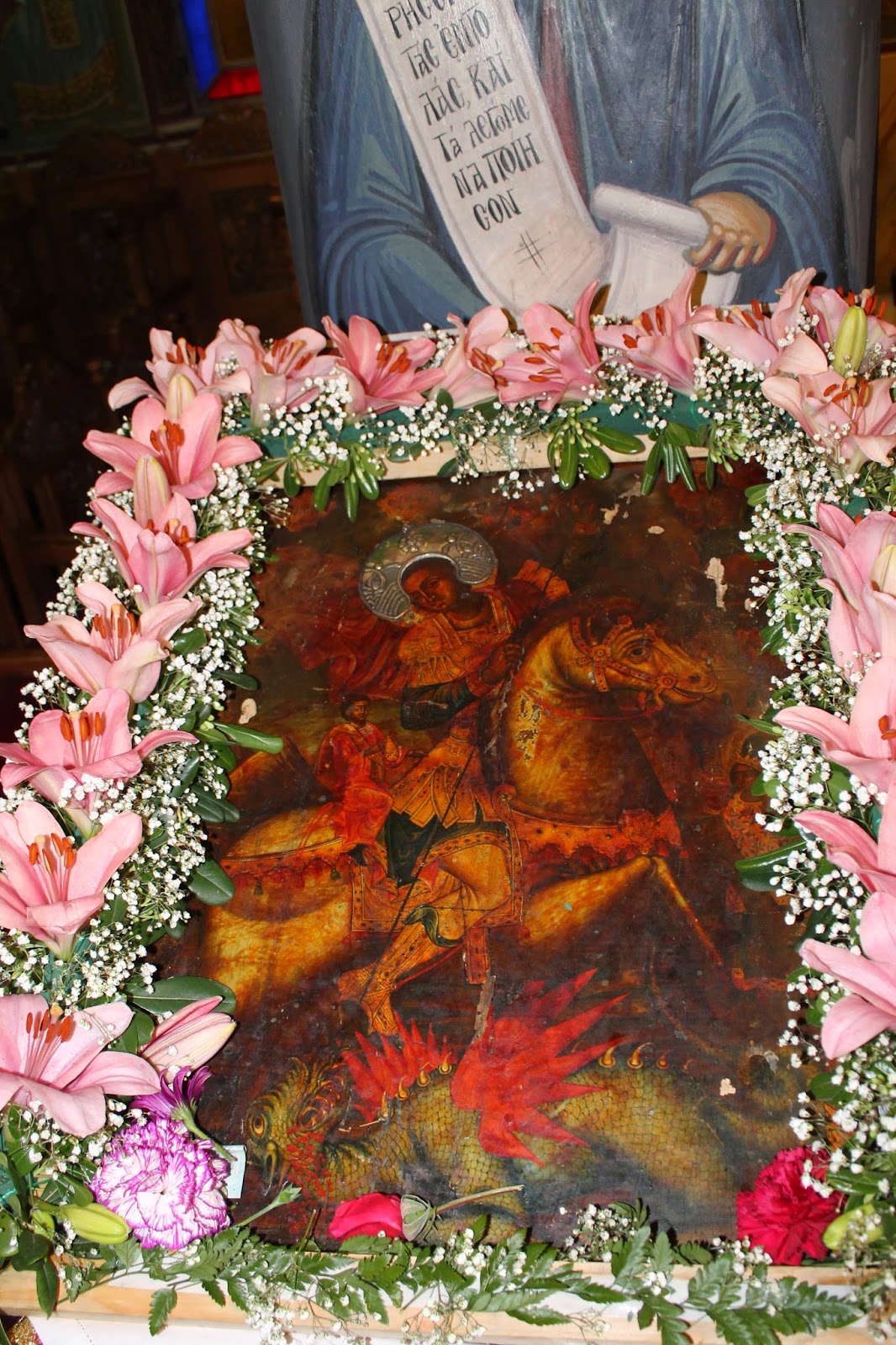 Αρκετοί πιστοί ακολούθησαν την περιφορά της εικόνας του Αγίου Γεωργίου ενώ κατά τον εσπερινό έλαβε χώρα και αρτοκλασία.