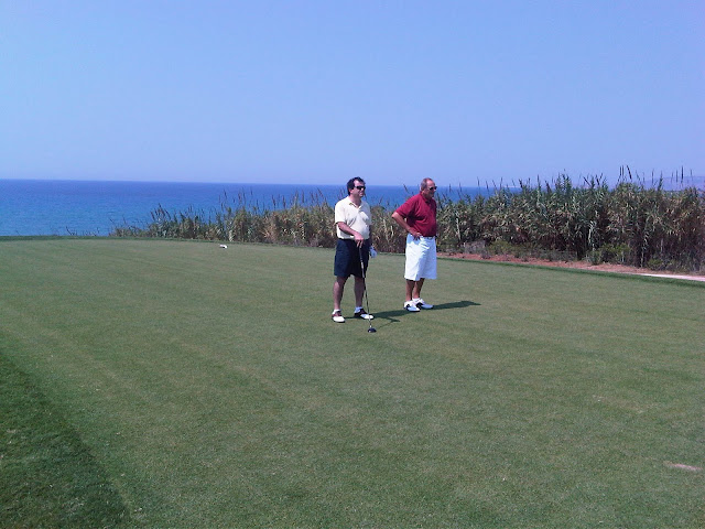 | Ο Κώστας Μπακούρης με το φίλο του και συμπατριώτη μας Δημήτρη Λογοθέτη παίζουν γκόλφ |