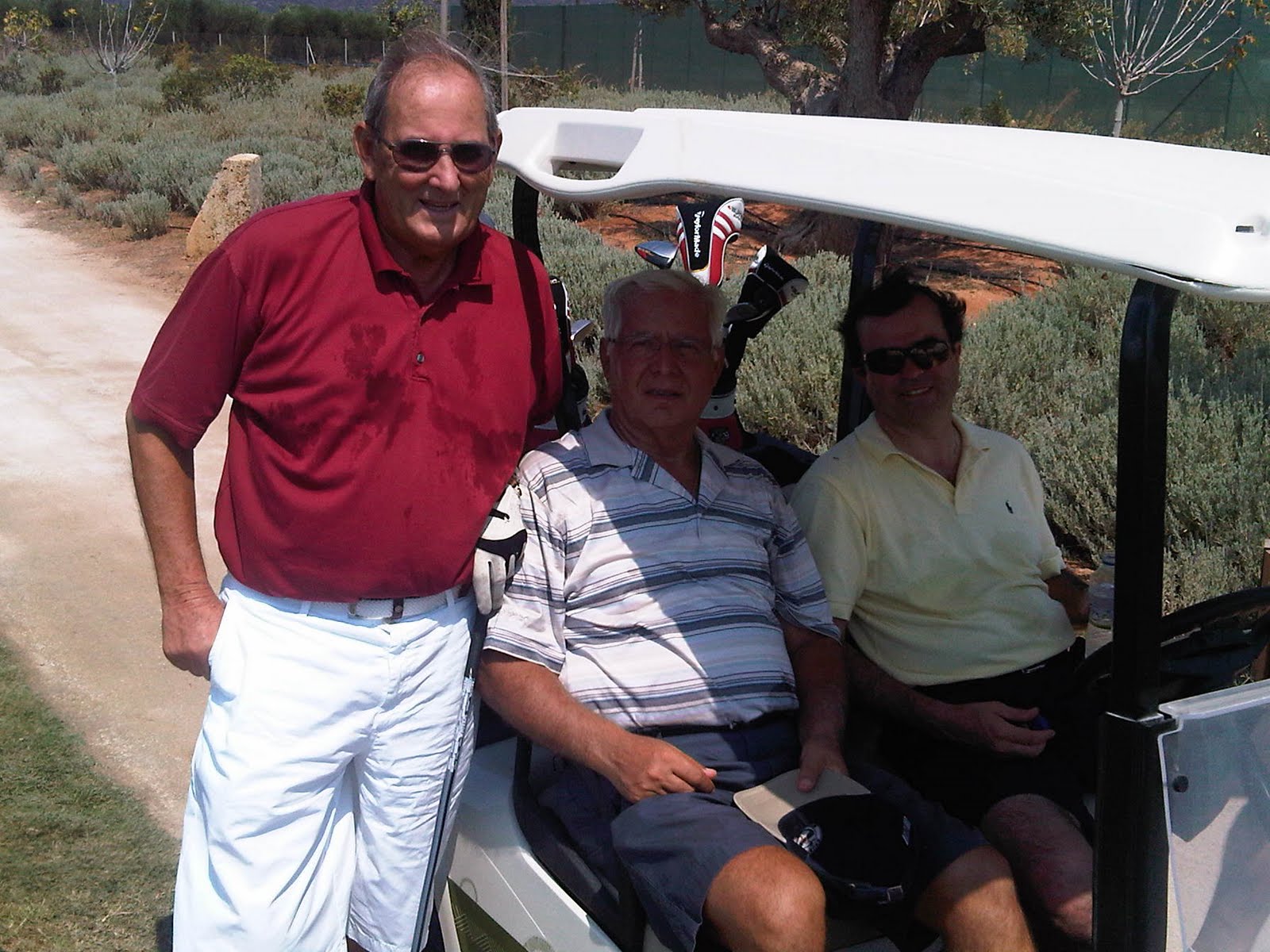 | O Κώστας Μπακούρης με τον Δημήτρη Λογοθέτη και κοινό τους φίλο σε αγώνα γκόλφ |