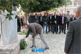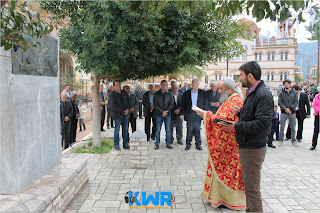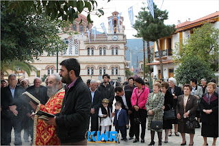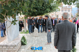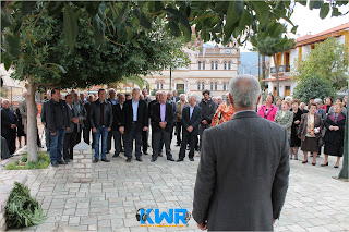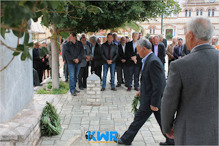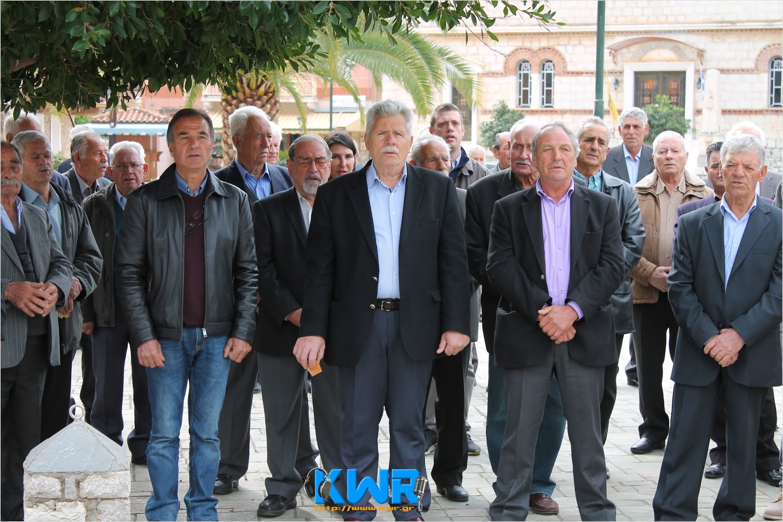 Μετά την κατάθεση των στεφανιών ακολούθησε ενός λεπτού σιγή και στην συνέχεια όλοι οι παρευρισκόμενοι έψαλλαν τον Εθνικό Ύμνο.