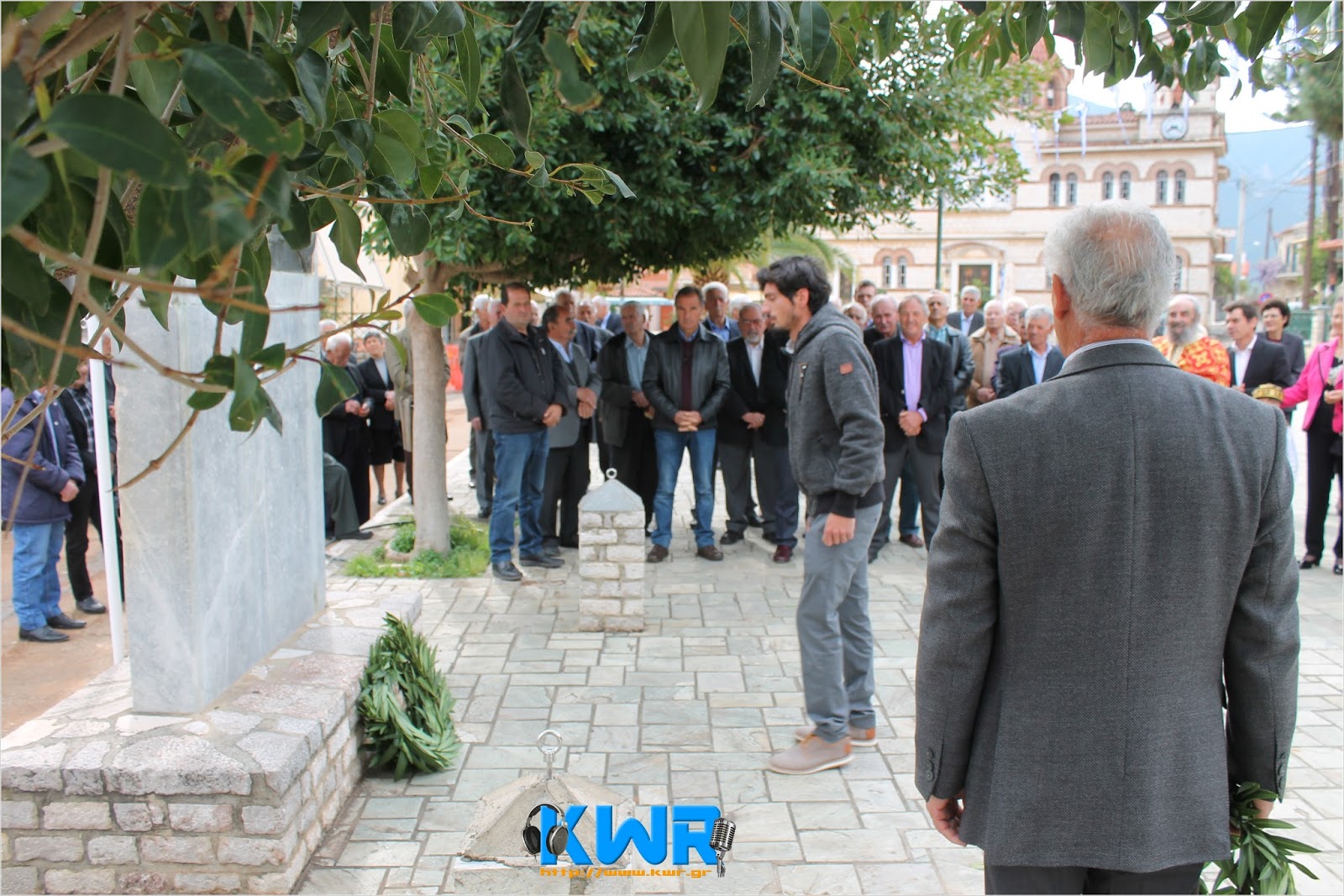 Έτσι μετά την Θεία Λειτουργία στον Τρισυπόστατο Ναό Αγίου Βασιλείου-Αγίου Γεωργίου και Αγίας Βαρβάρας, οι κάτοικοι του χωριού βρέθηκαν στην Κεντρική Πλατεία του χωριού όπου έγινε επιμνημόσυνη δέηση και κατάθεση στεφανιών από τον Πρόεδρο του χωριού Λυτρίβη Αθανάσιο, τον πρόεδρο του Α.Ε.Ε.Σ.Κορακοβουνίου Λυτρίβη Γεώργιο, το μέλος του Συλλόγου Φίλων Ορεινού Κορακοβουνίου Νικόλα Κουλενιανό και τον πρόεδρο του Αγροτικού Συνεταιρισμού Κορακοβουνίου Λυτρίβη Ιωάννη.