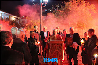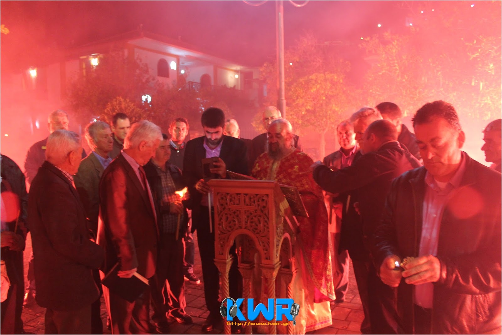 Πλήθος πιστών κατέκλυσαν την εκκλησία και μετά το "Δεύτε Λάβετε Φως" ο ιερέας του χωρίου π .Κωνσταντίνος Σαμαρτζής όπως κάθε χρόνο μετέβη στην πλατεία μπροστά στο Μνημείο του Άγνωστου Στρατιώτη όπου και έψαλε το Χριστός Ανέστη.