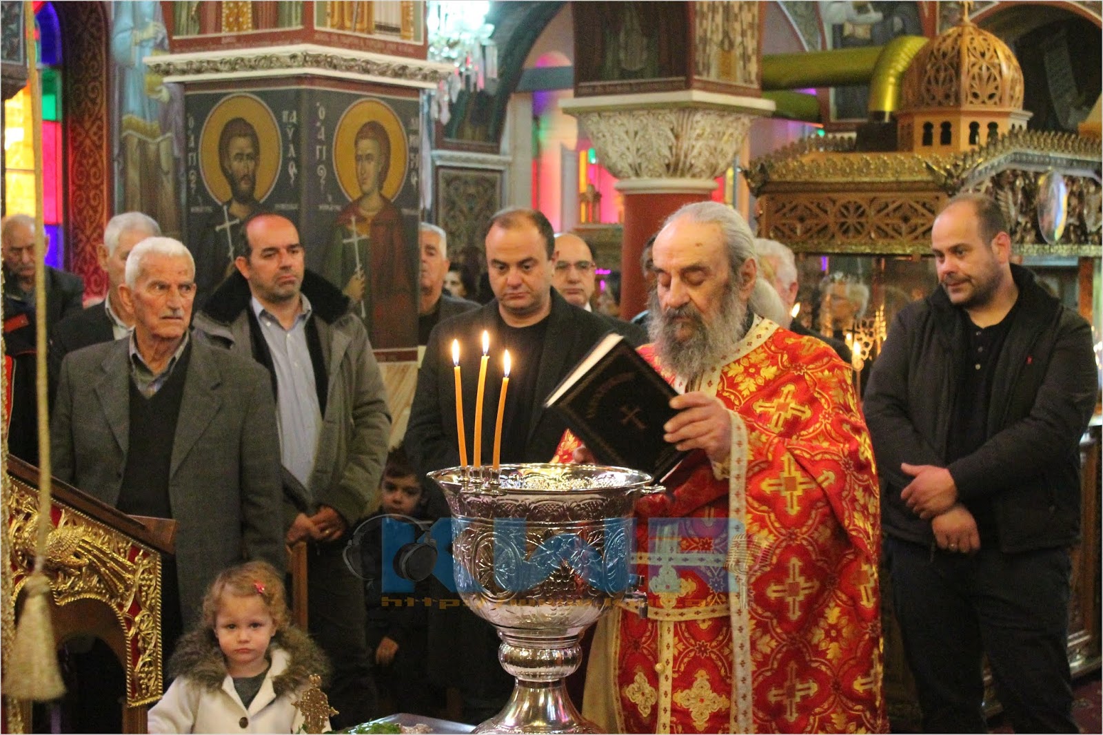 Χοροστατούντος του ιερέα Σαμαρτζή Κωνσταντίνου, οι πιστοί κατέκλυσαν τον Ιερό Ναό, παρακολουθώντας την Θεία Λειτουργία και τον Αγιασμό των υδάτων, λαμβάνοντας στο τέλος τον Αγιασμό και ανταλλάσσοντας τις ευχές της ημέρας και των εορτών.