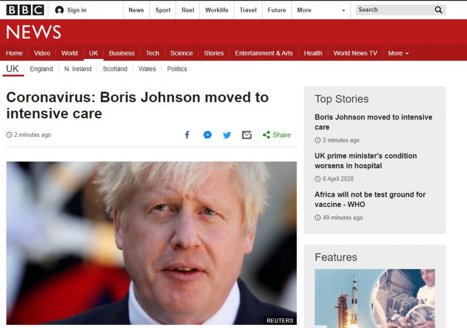 Ο πρωθυπουργός της Βρετανίας Μπόρις Τζόνσον μεταφέρθηκε στην εντατική φροντίδα στο νοσοκομείο αφού τα συμπτώματα του κοροναϊού «επιδεινώθηκαν», σύμφωνα με όσα μεταδίδει το BBC