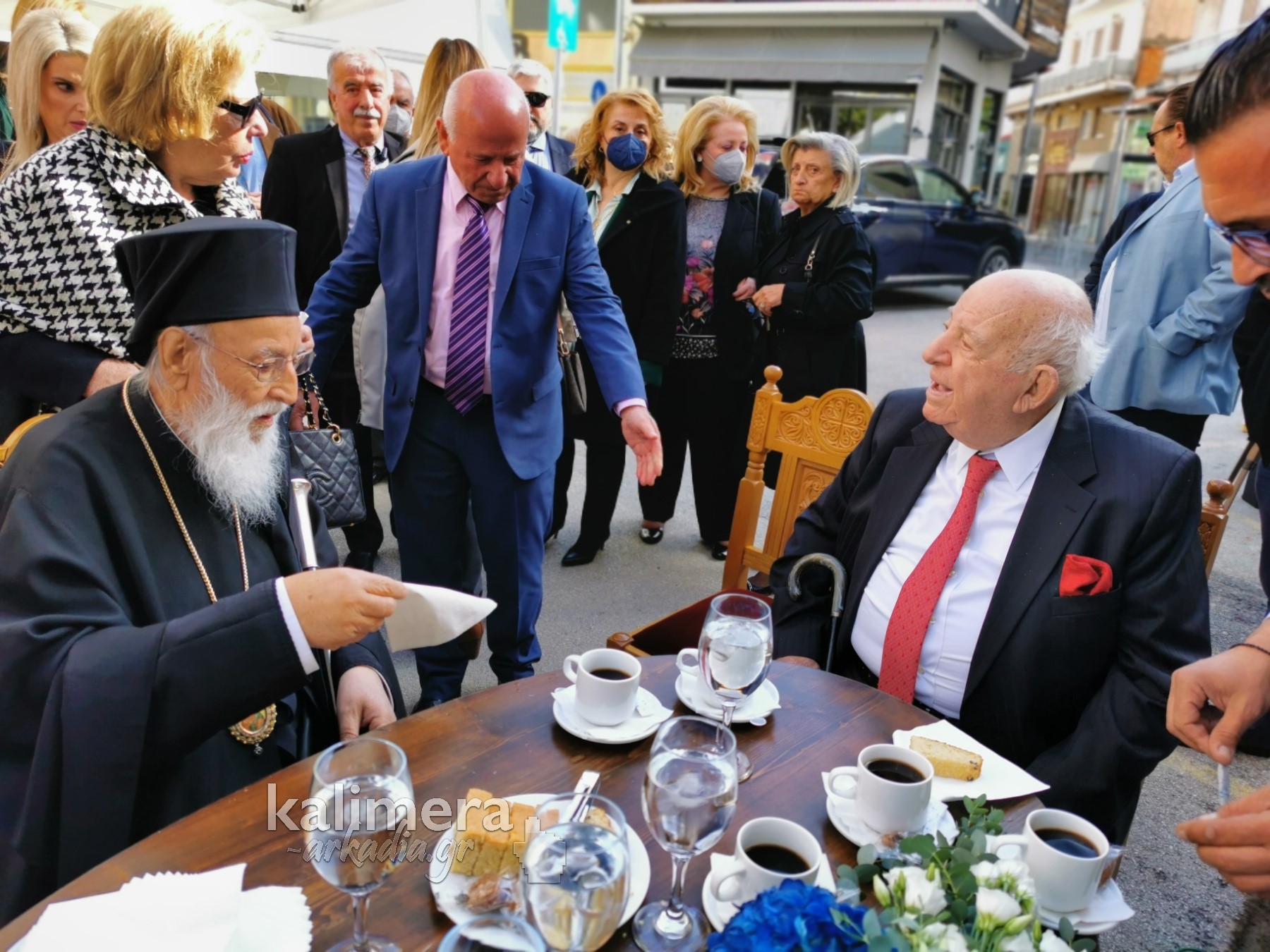 Επίσης, ο κ. Σταύρος Δέμος απόλαυσε τον καφέ του με τη σ΄ζυυγό του και τον Μητροπολίτη Μαντινείας και Κυνουρίας κ. Αλέξανδρο.